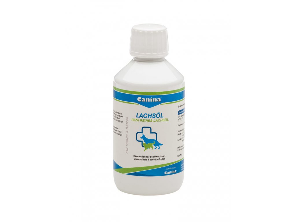 Doplňkové krmivo pro psy a kočky. 100% lososový olej získávaný ze suroviny potravinářské kvality. Je bohatý na vysoce nenasycené mastné kyseliny (eikozapentaenovou, dokozapentaenovou), které si organismus masožravce nedokáže vytvořit a musí je proto získat potravou, neboť jsou esenciální (životně nezbytné) pro zdárný průběh metabolických reakcí v organismu.